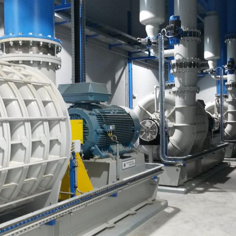 Die Betriebskurve des Gebläses deckt einen großen Durchflussbereich ab und ermöglicht so einen variablen Durchfluss, der an die Menge der zu verbrennenden Abfallprodukte angepasst werden kann. Unsere Gebläse können auch für die Luftzufuhr zum Brenner verwendet werden, der zur Beheizung des Sandbettes dient.