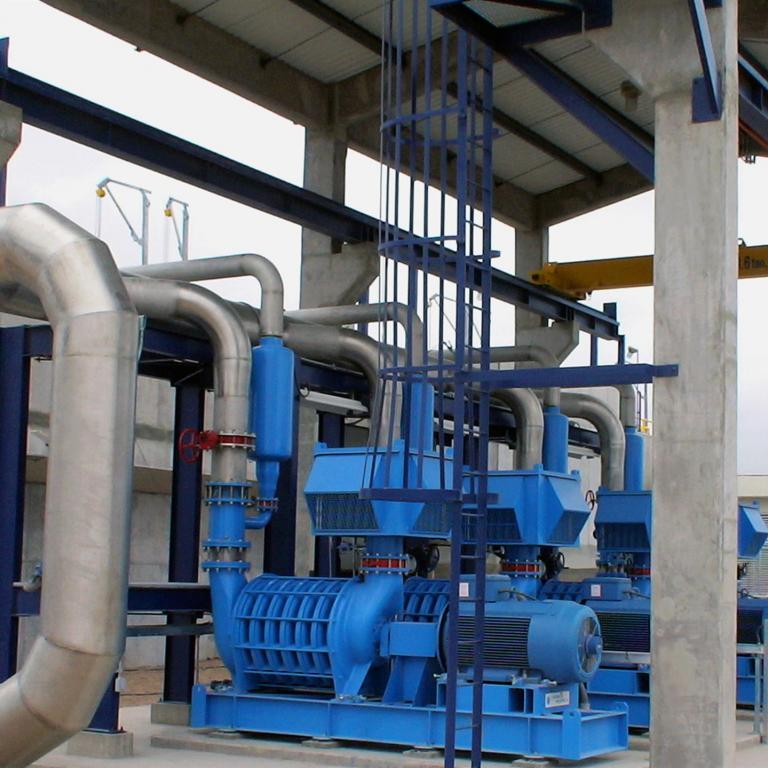 Aufgrund der verringerten Temperatur wird somit Energie gespart. Die mehrstufige Flash-Destillation, ein führendes Verfahren, macht 85% der gesamten Produktion aus. Mehrstufige Gebläse von Continental Industrie werden für die Rückspülung bei der Vorbehandlung der Membranfiltration vor der Entsalzung der Umkehrosmose verwendet.