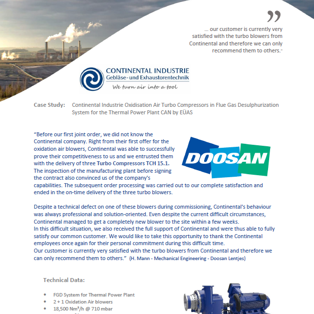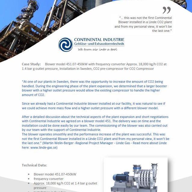 „In der Continental Industrie GmbH haben wir einen kompetenten Partner gefunden in Bezug auf Lieferungen von Gasgebläse.
